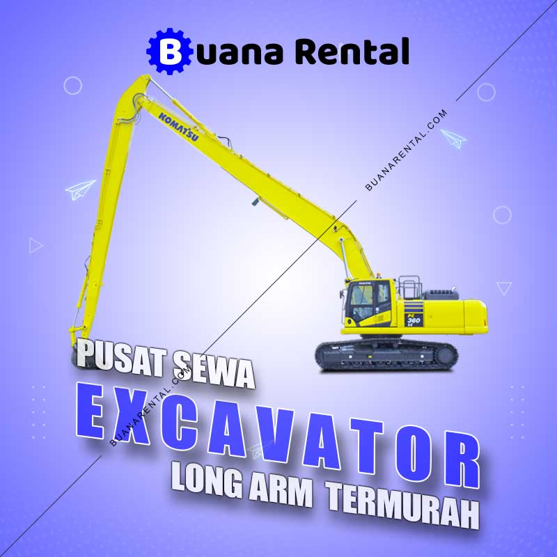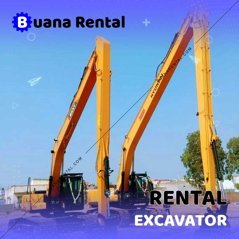 Harga Sewa Excavator Longarm perjam include dan exclude April 2026. Selamat datang di halaman web Buana Rental yang kami kelola di bawah naungan PT Barata Buana Mandiri. Di sini kami melayani penyewaan alat berat Excavator Long Arm, sangat cocok untuk pekerjaan khusus seperti pengerukan saluran air, pengerjaan di bawah air, atau penggalian besar. Bisa menggali pada kedalaman yang lebih besar, proyek penggalian fondasi besar. Untuk informasi pemesanan sebaiknya hubungi admin kami.